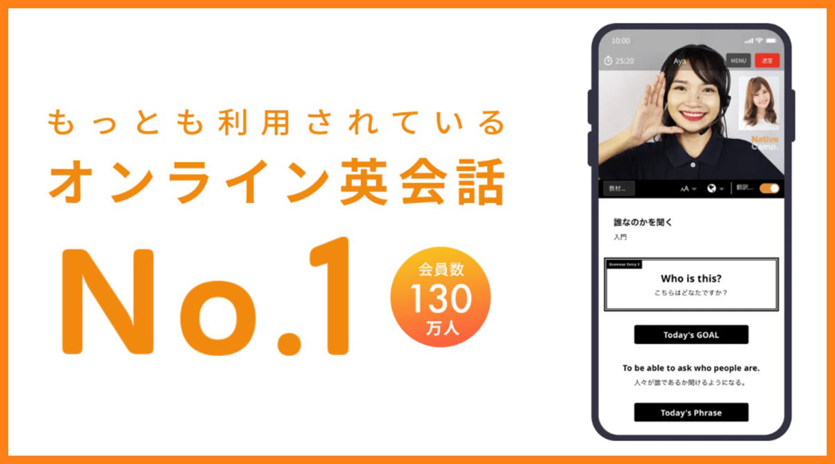 今日は、すごく面白い英会話プログラムについて教えたいと思います。名前は「ネイティブキャンプ」。これは、いつでも、どこでも英会話のレッスンができるところなんだよ。