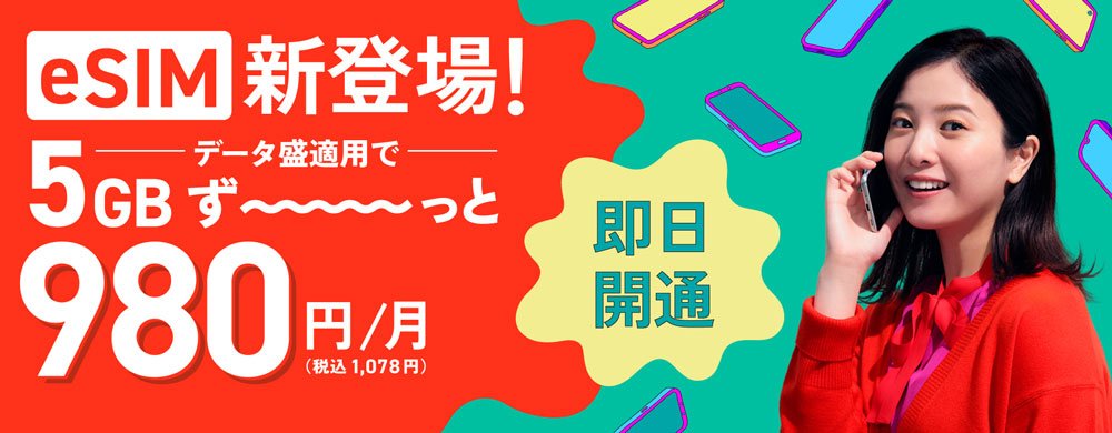 1GBが月額利用料がたったの980円(税抜)で、端末込みでも1,180円(税抜)から利用できるんだ。